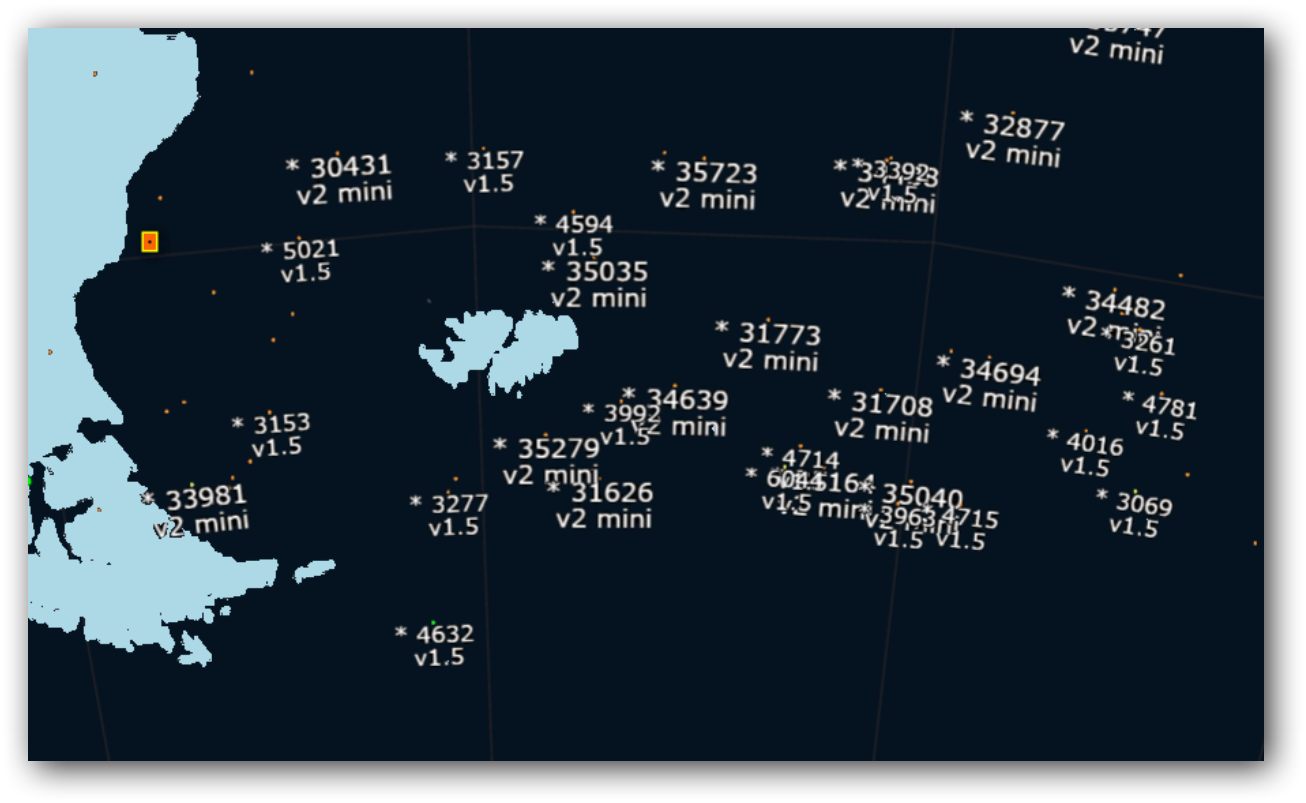 The above image shows the average number of Starlink LEO satellites near the Falkland Islands at any given time.
