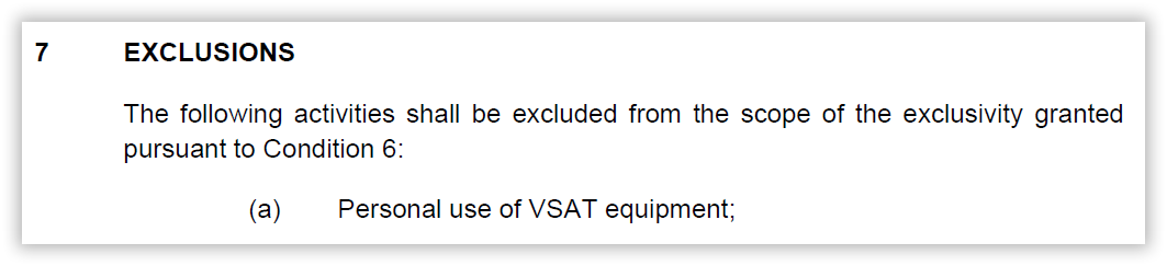This clause fundamentally weakens the argument and the claim that Sure SA held a fully exclusive monopoly over all forms of connectivity. It didn’t, and gave FIG legitimate legal grounds to interpret the agreement as permitting the use of alternative VSAT (well, LEO in reality) providers such as Starlink for personal and FIG use. However, the inclusion of the word “personal” has had significant knock-on repercussions over the years, which have been discussed elsewhere.